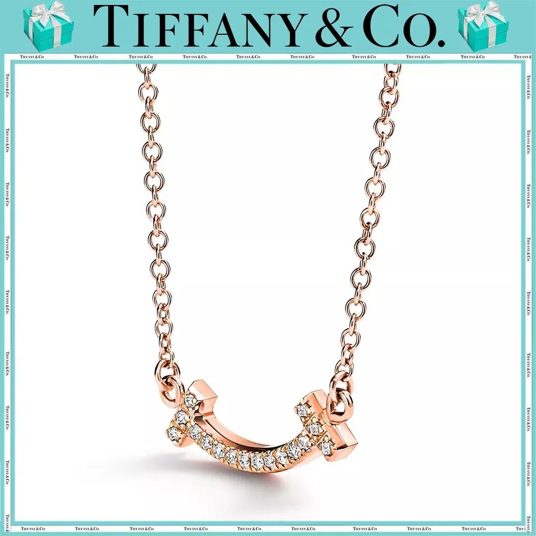 【国内発送/直営店】Tiffany T シリーズ18Kローズゴールド ダイヤモンド ミニ Smile ネックレス