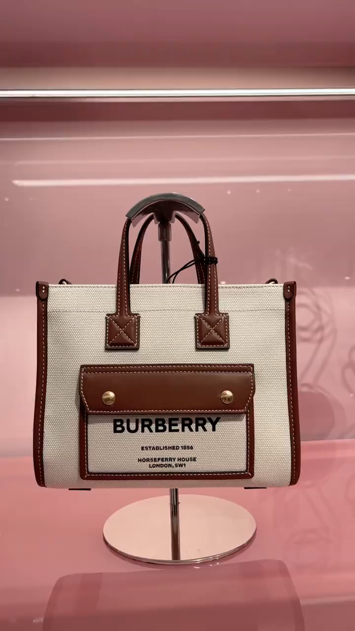 バーバリー ハンドバッグ ミニ ツートンカラー キャンバス&レザー ラッパーバッグ 2WAYハンドバッグ 品番8044143